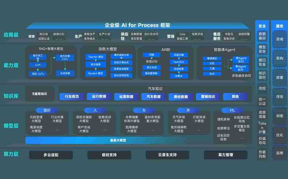 端到端的一站式AI工作空间深度融合了从企业战略规划到日常经营的全流程业务板块,,定向解决车企内部领域多、、部门多、、、链条长、、场景碎片化等难题,,支持车企快速构建以AI为核心的生产力写作体系,,实现任务执行与AI能力的无缝集成与交互